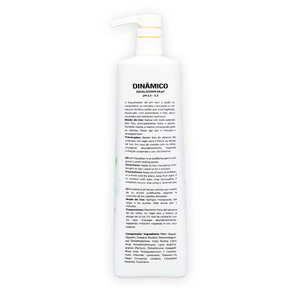 O Equalizador de pH neutraliza e acidifica os fios como passo posterior a processos químicos, como coloração, descoloração e alisamento. Alinhando as camadas cuticulares da fibra capilar, condicionando e suavizando.